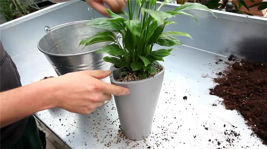 Die Zimmerpflanze sollte fest im Pflanztopf stehen und nicht wackeln.