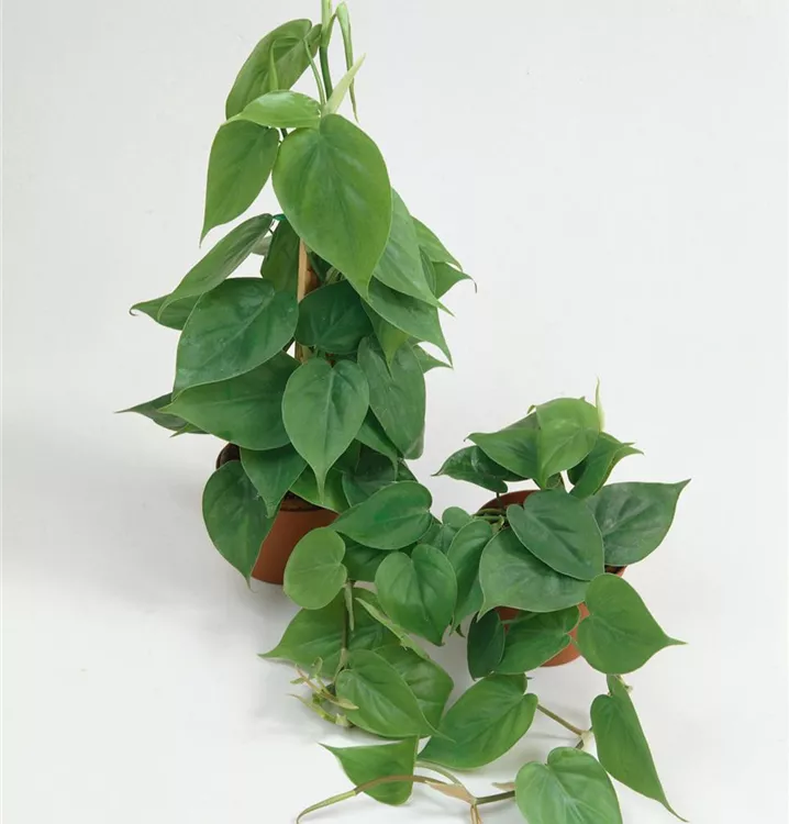 Der Philodendron (Philodendron scandens) trägt dunkelgrüne, herzförmige Blätter. Diese rankende Pflanze gedeiht am besten an einem hellen bis schattigen Standort.