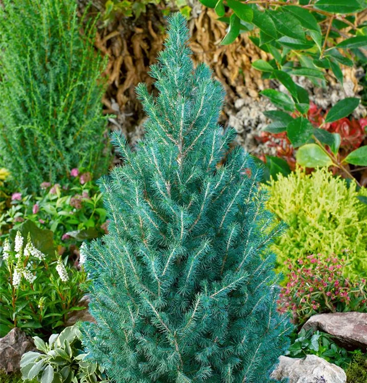 Die Weiß-Fichte (Picea glauca) ist ein Baum, welcher aufrecht wächst und gewöhnlich eine Höhe von ca. 5 m und eine Breite von ca. 2,5 m erreicht. Ihre nadelförmigen Blätter haben eine blau-grüne Färbung. Dieses Gehölz ist gut frostverträglich. Sie bevorzugt durchlässigen Boden in sonniger bis halbschattiger Lage.
