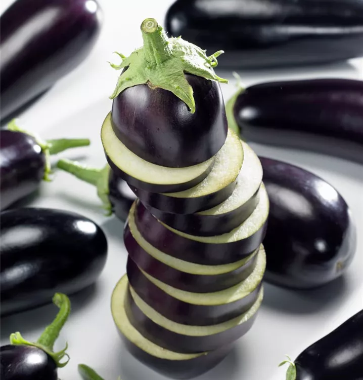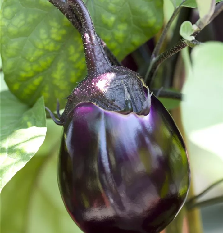 Die Aubergine (Solanum melongena) bildet Früchte, die mild schmecken und bereits ab August geerntet werden können. Für das optimale Wachstum der Aubergine werden ein sonniger Standort und durchlässiger, nährstoffreicher Boden benötigt.