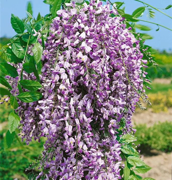 Wisteria floribunda gedeiht auf allen sauren, humosen und genügend feuchten Böden.