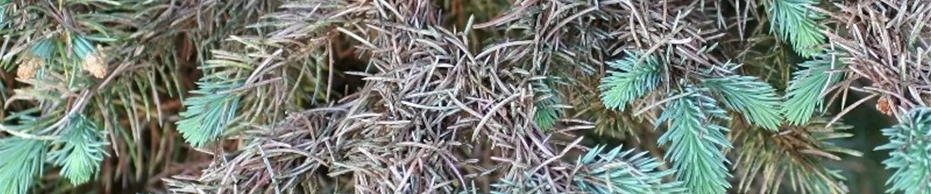 1. Nadelverfärbung und Nadelfall an Blaufichten durch die Sitkafichtenlaus (Elatobium abietinum):