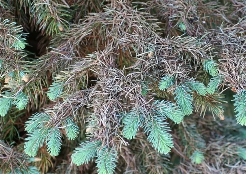 Auch wenn Blaufichten nach einem starken Befall sehr viele Nadeln verlieren, so können sie sich doch in den folgenden Jahren erfahrungsgemäß wieder gut von einem Befall erholen.