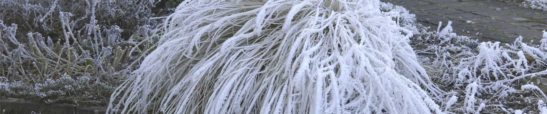 Im Herbst werden winterharte Gräser zusammengebunden, damit die Blätter nicht auseinanderfallen und das Herz durch die winterliche Feuchtigkeit fault. In besonders kalten Lagen oder bei Ostwind sind winterharte Gräser über eine Vliesabdeckung sehr dankbar.