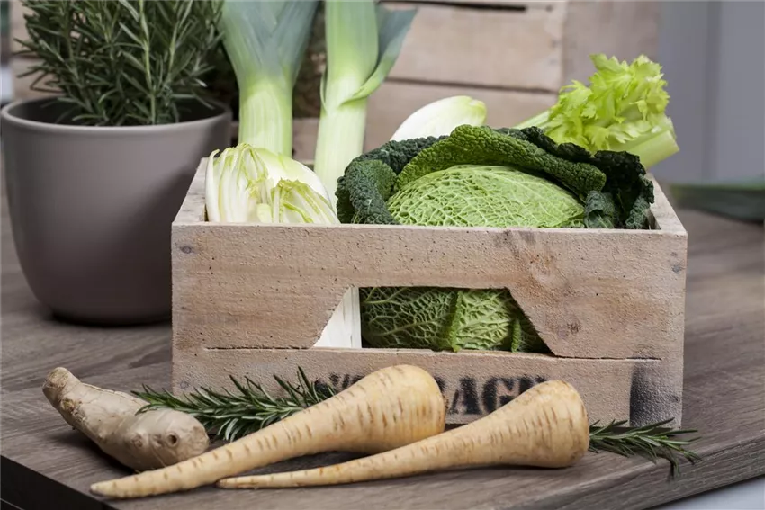 Die meisten Wurzelgemüse werden im Herbst geerntet, doch die Mairübe ( Brassica rapa var. rapifera subvar. majalis ) ist ein typischer Frühsommergenuss. Von Mai bis August wird ausgesät, ab Mai geerntet. Die schneeweißen, runden Rüben sind bei einer Dicke von fünf bis sechs Zentimeter zart und mild im Geschmack. Ein klassisches Herbstgemüse ist die Pastinake ( Pastinaca sativa ). Nachdem sie schon vor Jahrtausenden verzehrt wurde, verdrängten Kartoffeln und Möhren sie im 18. Jahrhundert aus den Gärten und von den Speiseplänen. Jetzt ist sie zurück und bereichert unsere Küche mit ihrem süßlich-herben, erdigen und ein wenig sellerieähnlichen Aroma. Ausgesät wird von April bis Mai ins Freiland, geerntet ab Oktober. Köstlich in Suppen oder als Schmorgemüse. Der Pastinake sehr ähnlich ist die Wurzelpetersilie ( Petroselinum crispum ssp. tuberosum , die Sorten ’Konika’ und ’Halblange’); die Aussaat sollte nicht zu früh erfolgen, idealerweise Ende April/Anfang Mai in den abgetrockneten Boden. Ein echter Schatz aus vergangenen Tagen ist die Rote Rübe ( Beta vulgaris ) ’Ägyptische Plattrunde’, die seit 1868 bis heute im Handel ist und sich bis weit in den Winter hinein lagern lässt. In dieser Liste nicht fehlen dürfen die Teltower Rübchen ( Brassica rapa f. teltowiensis ), die schon Goethe gemundet haben.