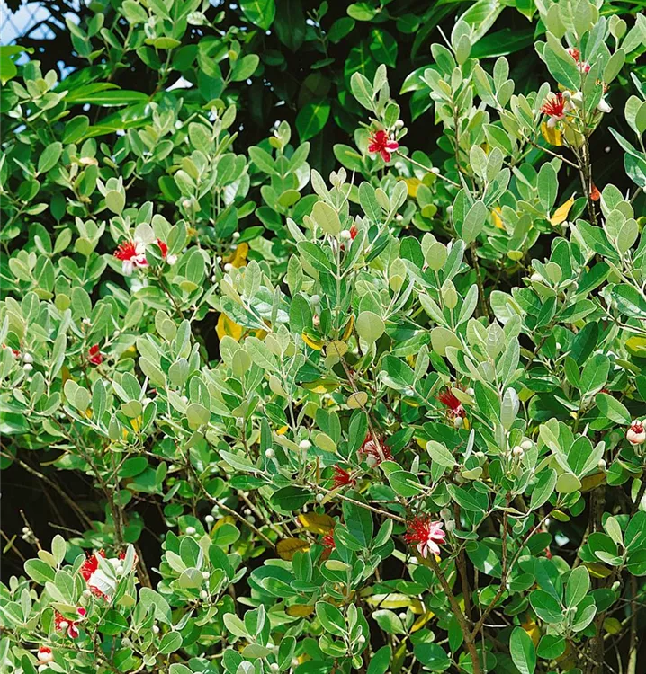 Die Ananas-Guave (Acca sellowiana) ist eine sehr beliebte Kübelpflanze. Verwenden Sie bevorzugt die spezielle Kübelpflanzenerde, denn sie verdichtet sich über längere Zeit nicht.