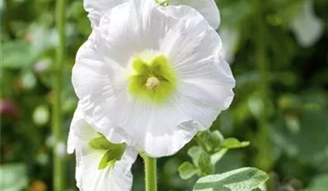 Die sommergrünen Blätter der Stockrose sind mittelgrün, rundlich, gelappt.