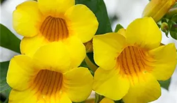 Die Goldtrompete (Allamanda cathartica) ist eine beliebte Pflanze für den Balkon. Die unzähligen, angenehm duftenden Blüten erscheinen, je nach Sorte, in verschiedenen Farben die ganze Saison hindurch. Ein sonniger Standort und ein durchlässiges Substrat werden bevorzugt.