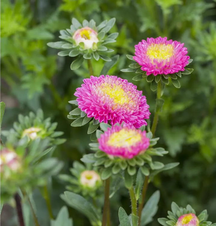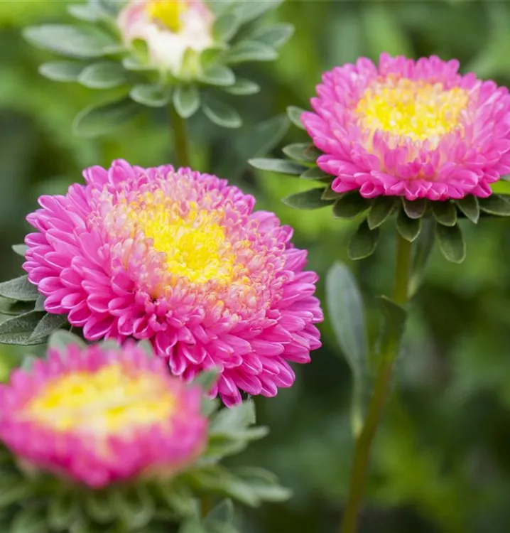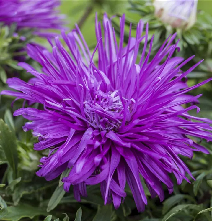 Die Gartenaster (Callistephus chinensis) ist eine beliebte Pflanze für den Balkon. Die unzähligen Blüten erscheinen, je nach Sorte, in verschiedenen Farben die ganze Saison hindurch. Ein sonniger Standort und ein durchlässiges Substrat werden bevorzugt.