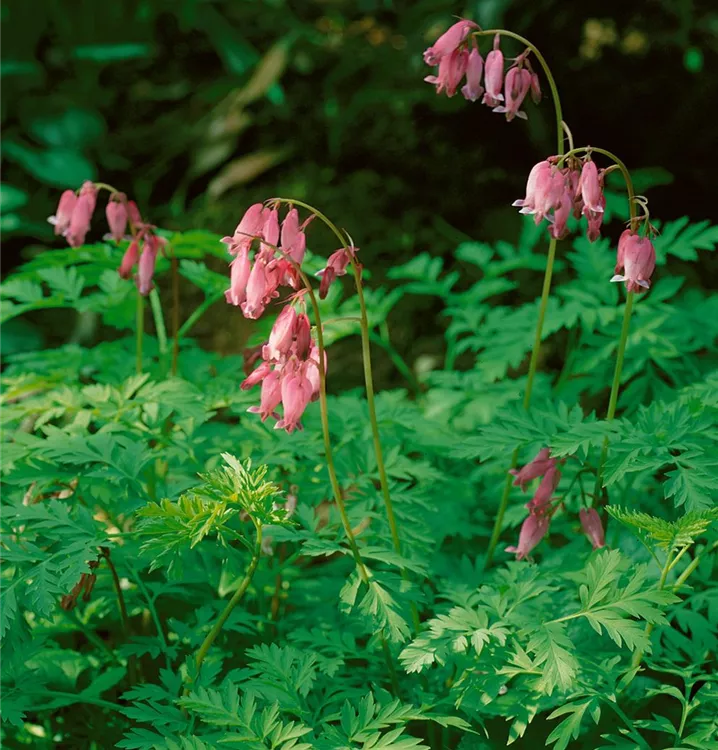 Die Zwergige Garten-Herzblume (Dicentra eximia) ist eine buschige, kriechende Staude, die von Mai bis August rosafarbene, in Trauben angeordnete Blüten bildet. An einem halbschattigen bis schattigen Standort mit durchlässigem, kalkfreiem, nährstoffreichem Boden erreicht sie gewöhnlich eine Höhe von ca. 30 cm und wird ca. 40 cm breit. Die Zwergige Garten-Herzblume ist gut frostverträglich.