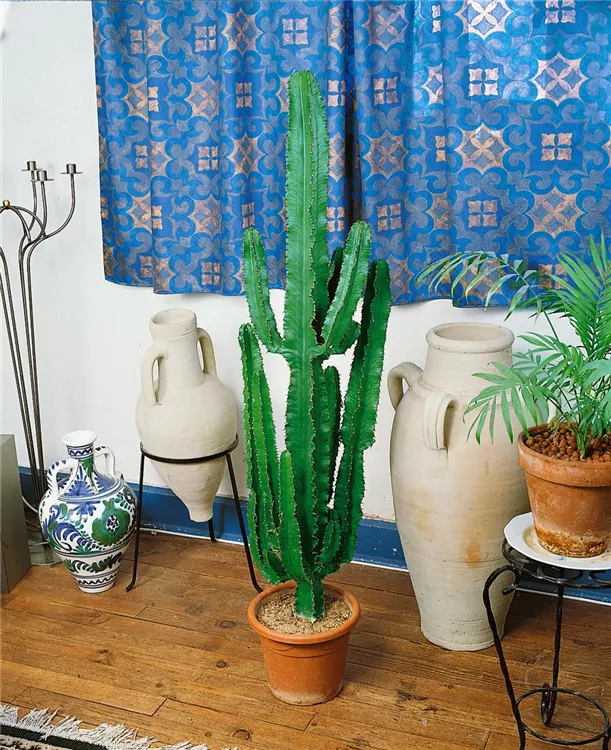 Die Abessinische Wolfsmilch (Euphorbia abyssinica) ist eine Pflanze mit dunkelgrünen, dickfleischigen Blättern. Diese säulenförmige Pflanze gedeiht am besten an einem sonnigen Standort.