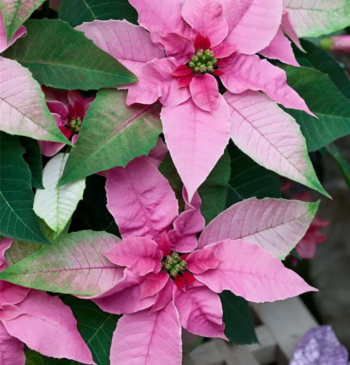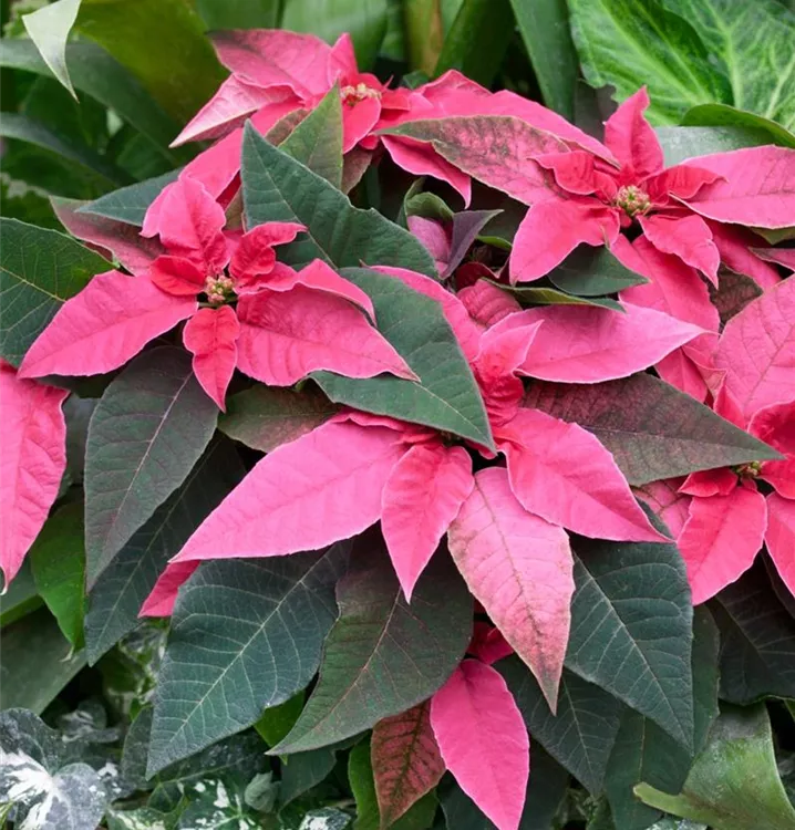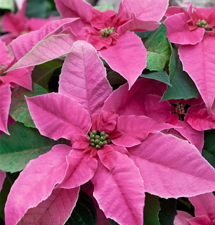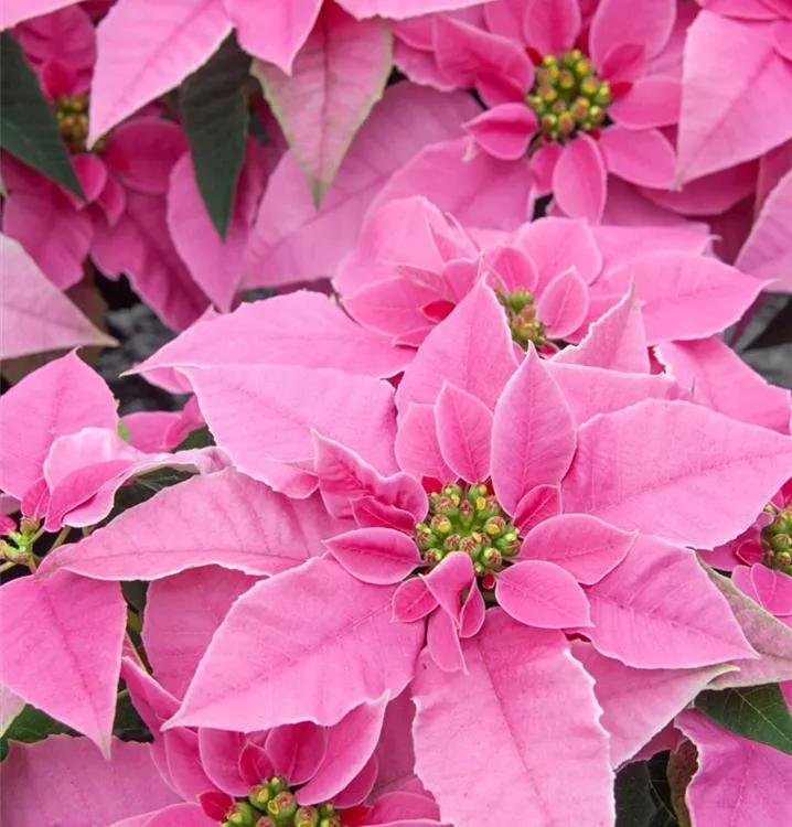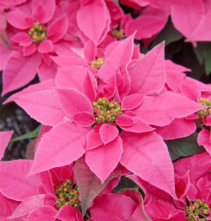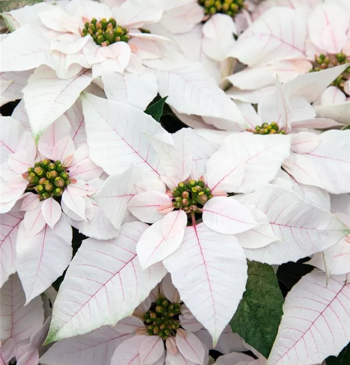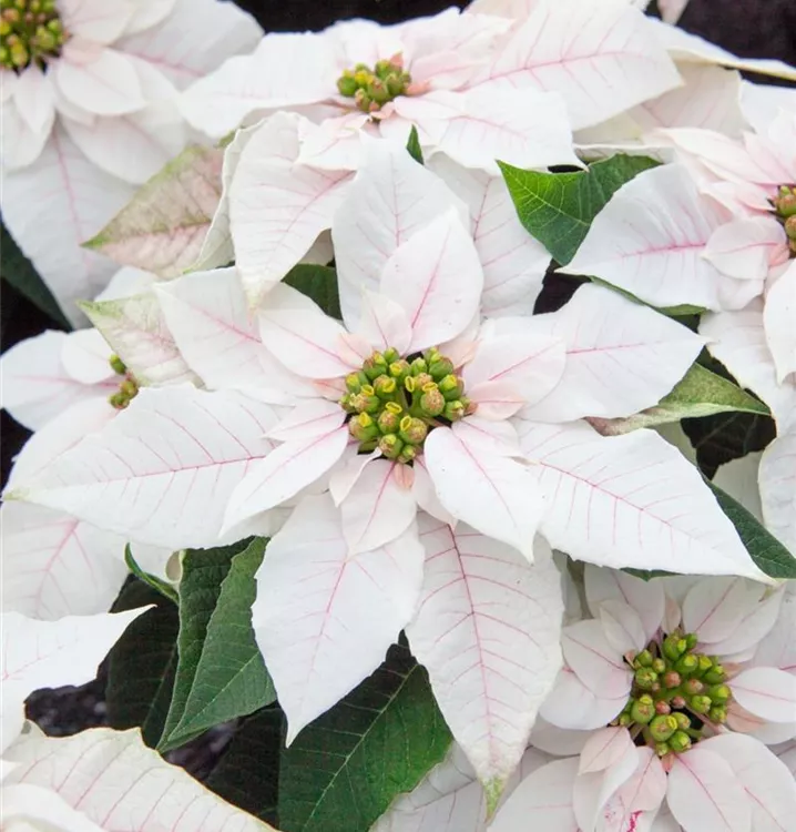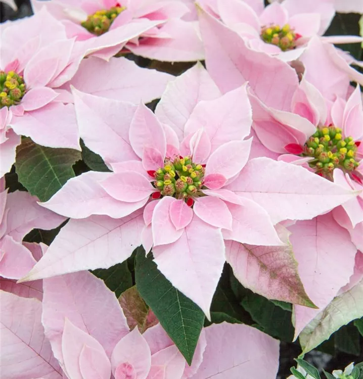 Die Herbststerne erfreuen sich aufgrund ihrer auffällig gestalteten, sternenförmigen Hochblätter und ihrer ungewöhnlichen Blütezeit einer großen Beliebtheit. Sorten der Gruppe 'Princettia' zeichnen sich durch einen besonders kompakten Wuchs und eine starke Verzweigung aus. Die Färbung der imposanten Hochblätter kann von einem strahlendem Weiß bis hin zu einem kräftigen Pink die verschiedensten Nuancen tragen.
