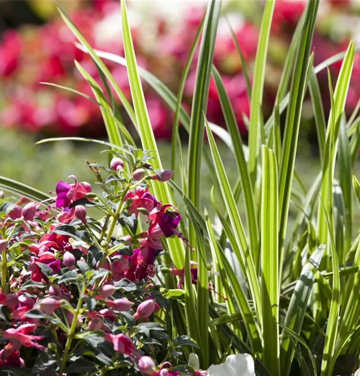 Die Fuchsie (Fuchsia) ist eine sehr beliebte Kübelpflanze. Ihre dekorativen Blüten sind glockenförmig und erscheinen von Juni bis September. Verwenden Sie bevorzugt die spezielle Kübelpflanzenerde, denn sie verdichtet sich über längere Zeit nicht.