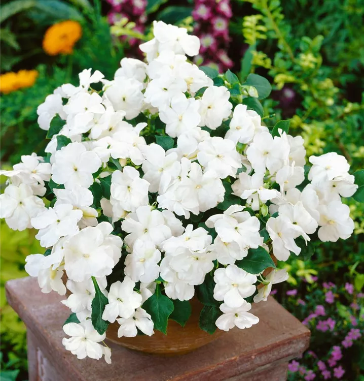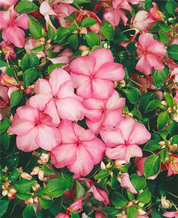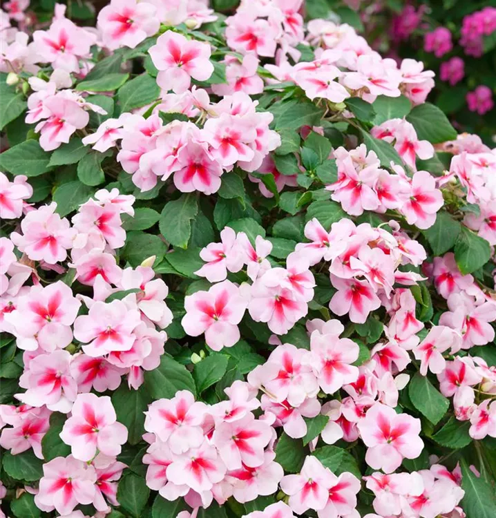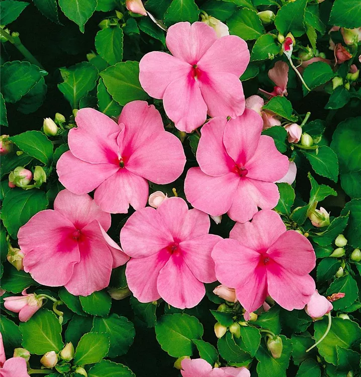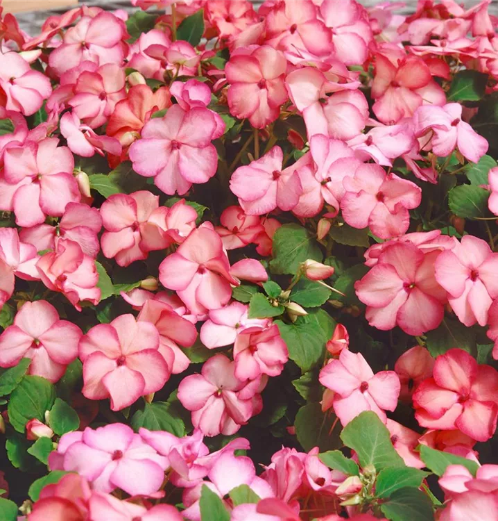 Das Fleißige Lieschen (Impatiens walleriana) ist eine beliebte Pflanze für den Balkon. Die unzähligen Blüten erscheinen, je nach Sorte, in verschiedenen Farben die ganze Saison hindurch. Ein halbschattiger bis schattiger Standort und ein durchlässiges Substrat werden bevorzugt.