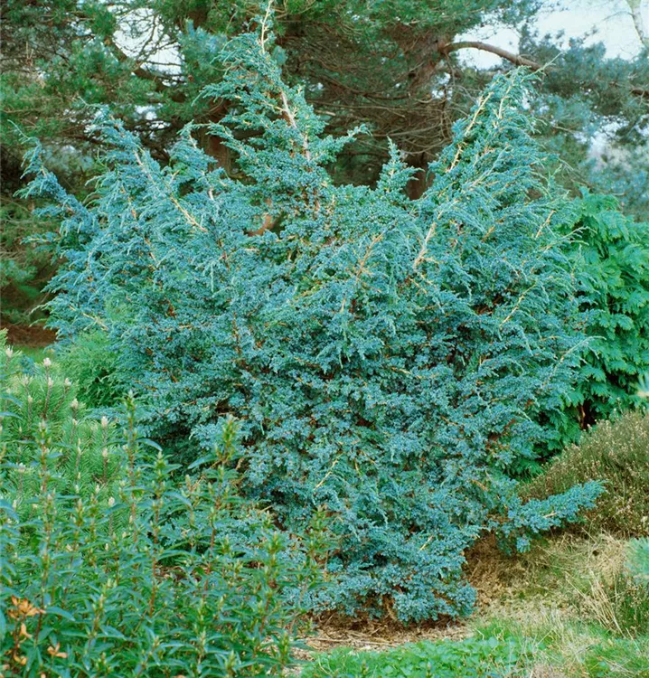 Der Chinesische Berg-Wacholder (Juniperus squamata) ist ein Gehölz, welches breit wächst und gewöhnlich eine Höhe von ca. 1,5 m und eine Breite von ca. 1,5 m erreicht. Dekorative blaue Zapfen zieren Juniperus squamata ab August. Dieses Gehölz ist gut frostverträglich. Er bevorzugt durchlässigen, nährstoffreichen Boden in sonniger bis halbschattiger windgeschützter Lage.