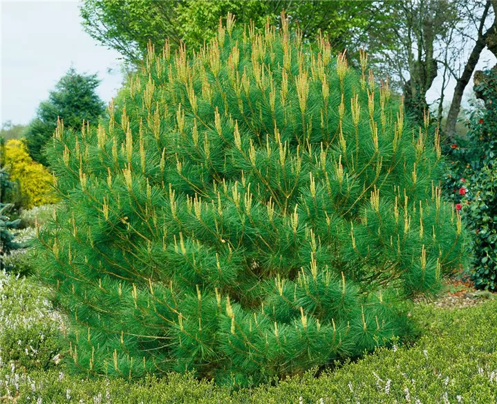 Japanische Rotkiefer 'Umbraculifera' ist aufrecht und schirmförmig im Aufbau. Langsam wachsend. In der Regel wächst sie 5 - 10 cm pro Jahr.