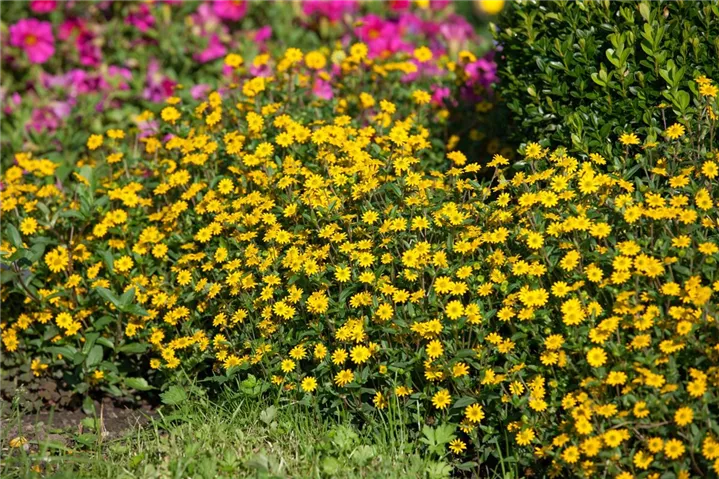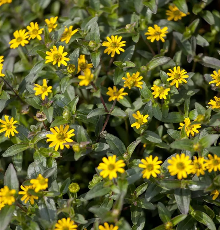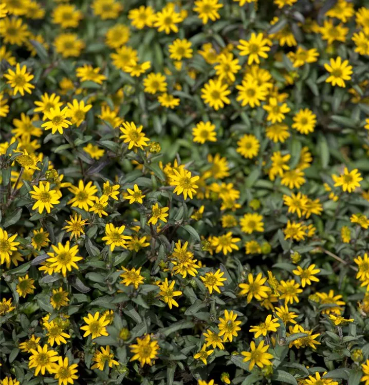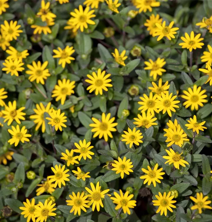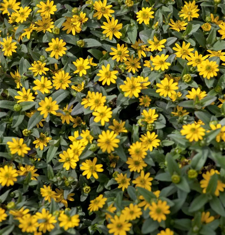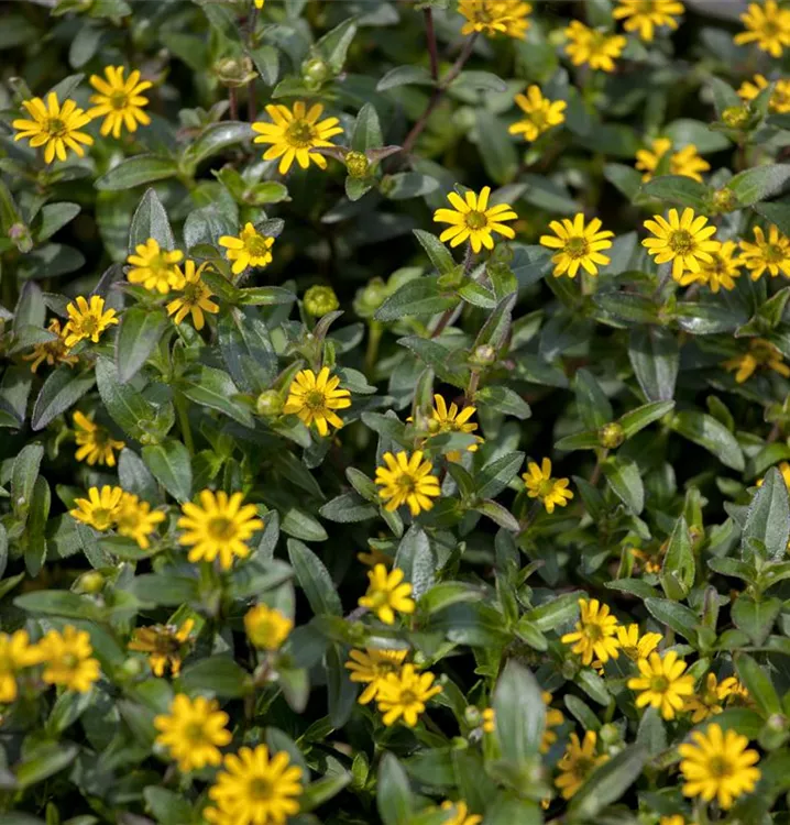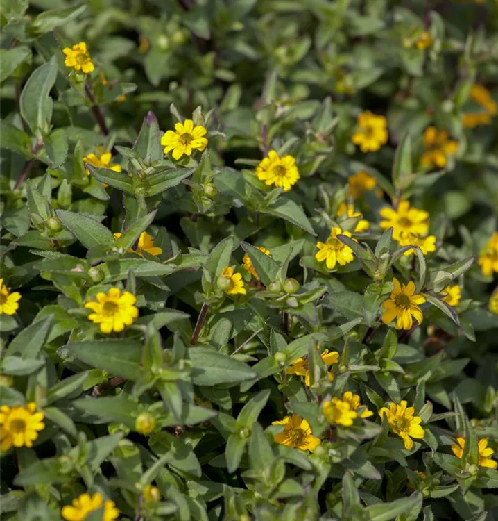 Der Husarenknopf (Sanvitalia procumbens) ist eine beliebte Pflanze für den Balkon. Die unzähligen Blüten erscheinen, je nach Sorte, in verschiedenen Farben die ganze Saison hindurch. Ein sonniger Standort und ein durchlässiges Substrat werden bevorzugt.