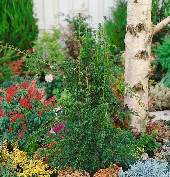 Die Adlerschwingen-Eibe 'Dovastoniana' setzt schöne Akzente gemeinsam mit: