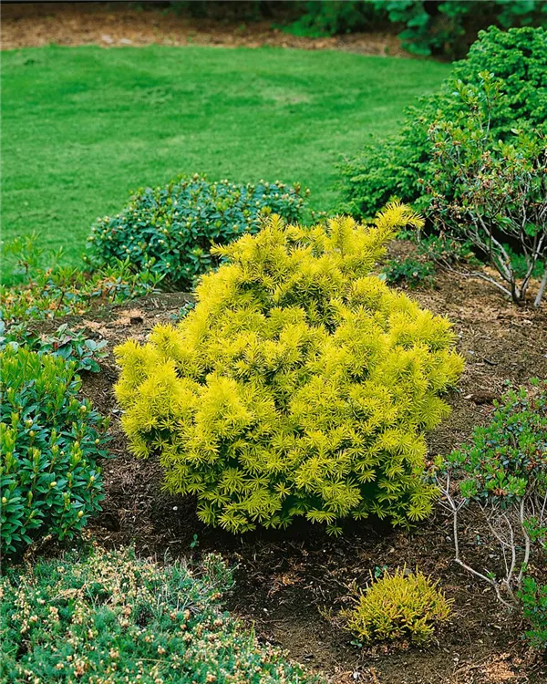 Die Eibe 'Goud Elsje' setzt schöne Akzente gemeinsam mit: