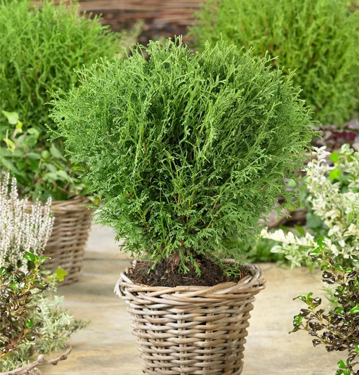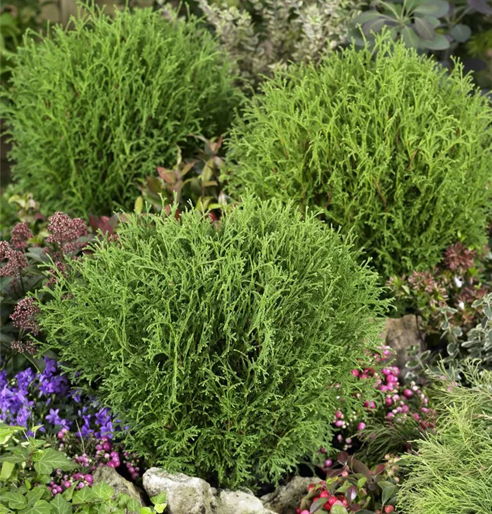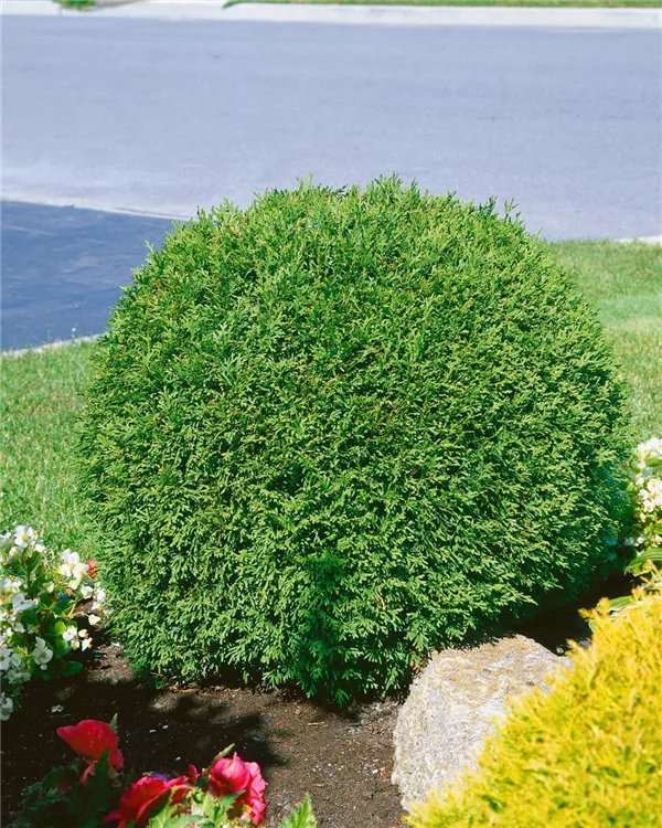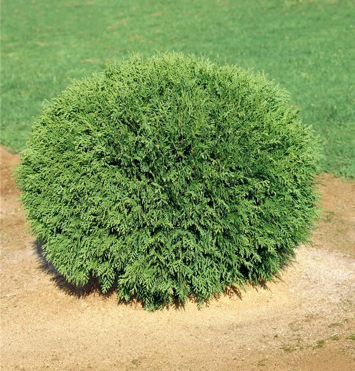 Lebensbaum 'Little Champion' ist ein kompakt und kugelförmig wachsender Strauch. Er erreicht gewöhnlich eine Höhe von 1,5 - 2 m und wird ca. 1,5 - 2 m breit. Langsam wachsend.